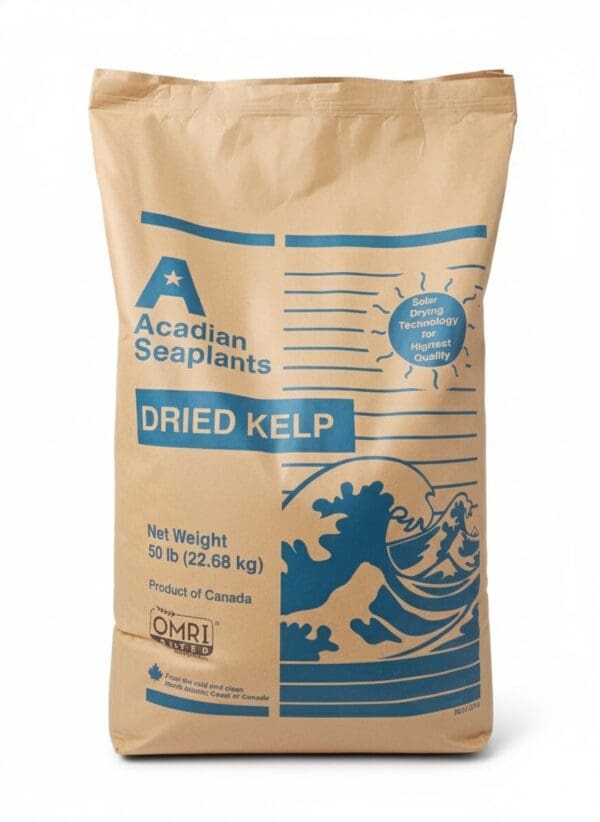 Nourish your land and livestock with the best from the North Atlantic. This 50 lb bag of Dried Kelp from Acadian Seaplants is a premium, all-natural supplement, sustainably harvested from the cold, clean coastal waters of Canada.