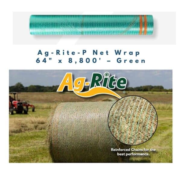 Ensure strong, secure, and efficient baling with Ag-Rite-P Net Wrap. This 64-inch by 8,800-foot net wrap is engineered for maximum durability, superior coverage, and reliable UV protection, keeping your hay, straw, and silage bales well-preserved in all conditions.