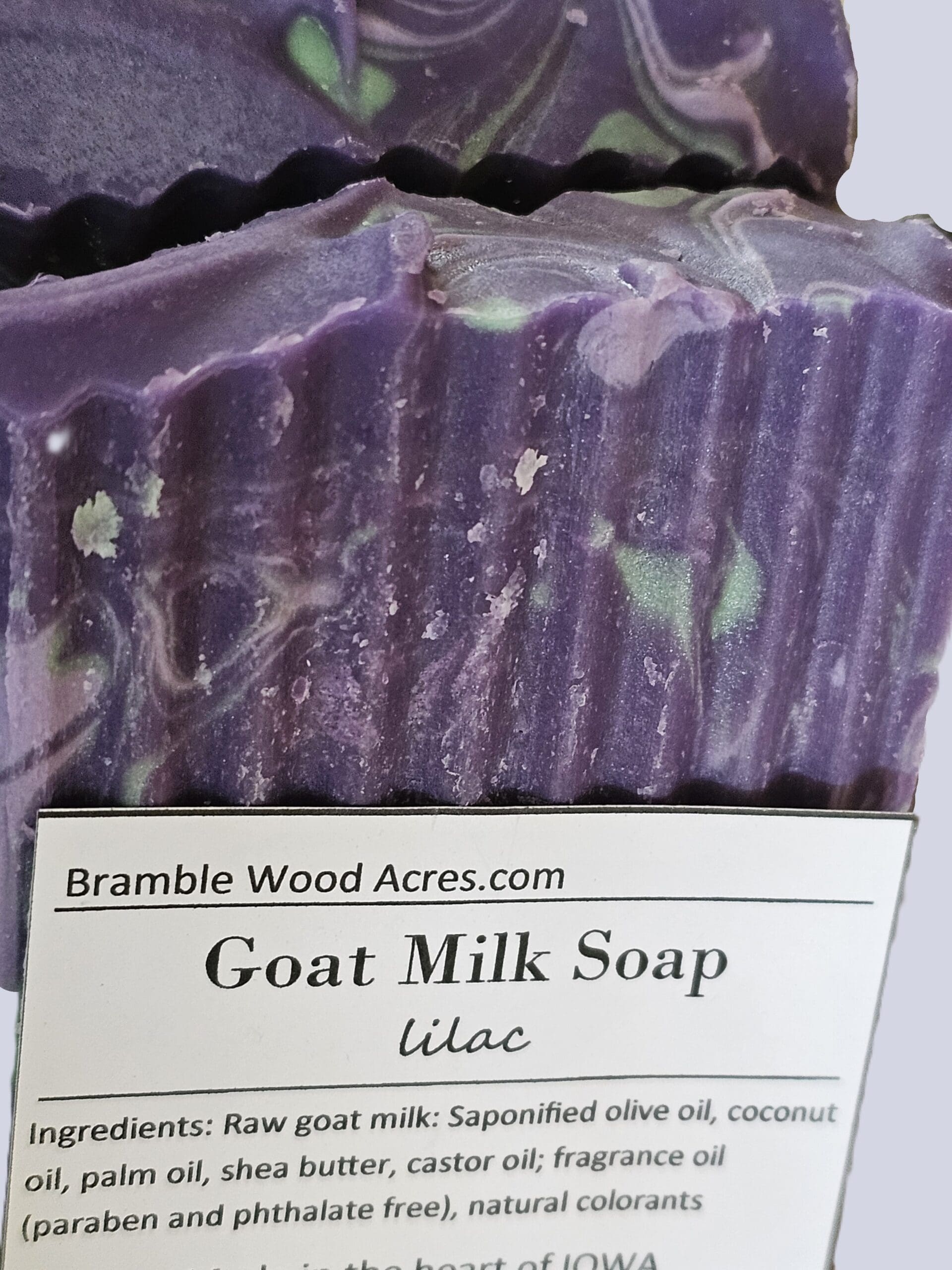 Celebrate spring year round with this floral lilac soap that lathers beautifully. Handmade by Bramble Wood Acres in Indianola Iowa.
