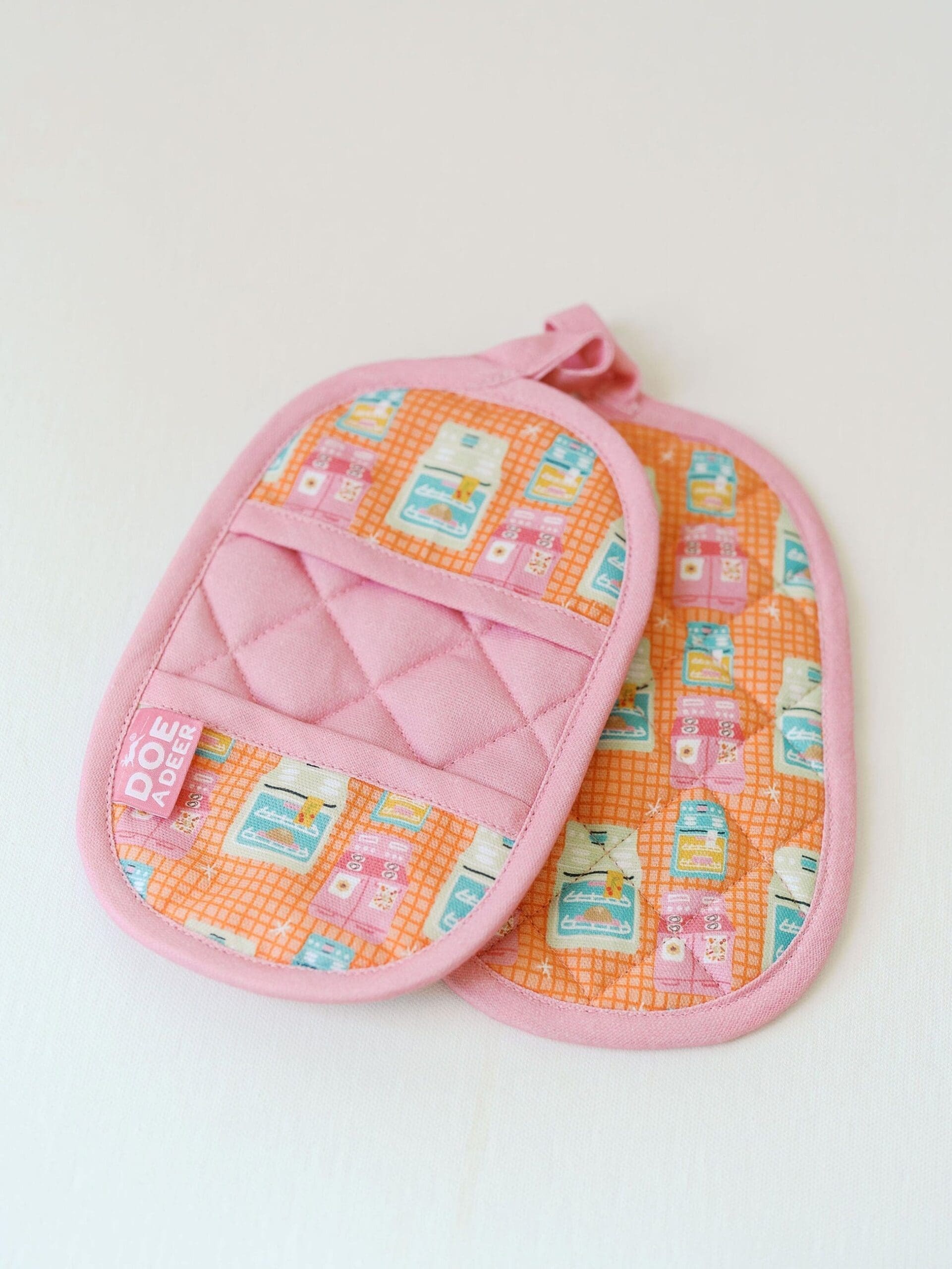 Protect your hands and handle hot dishes with confidence using oven mitts from Iowa’s Doe a Deer. This kitchen essential is beautifully designed to combine everyday function with Doe a Deer’s signature nostalgic charm.