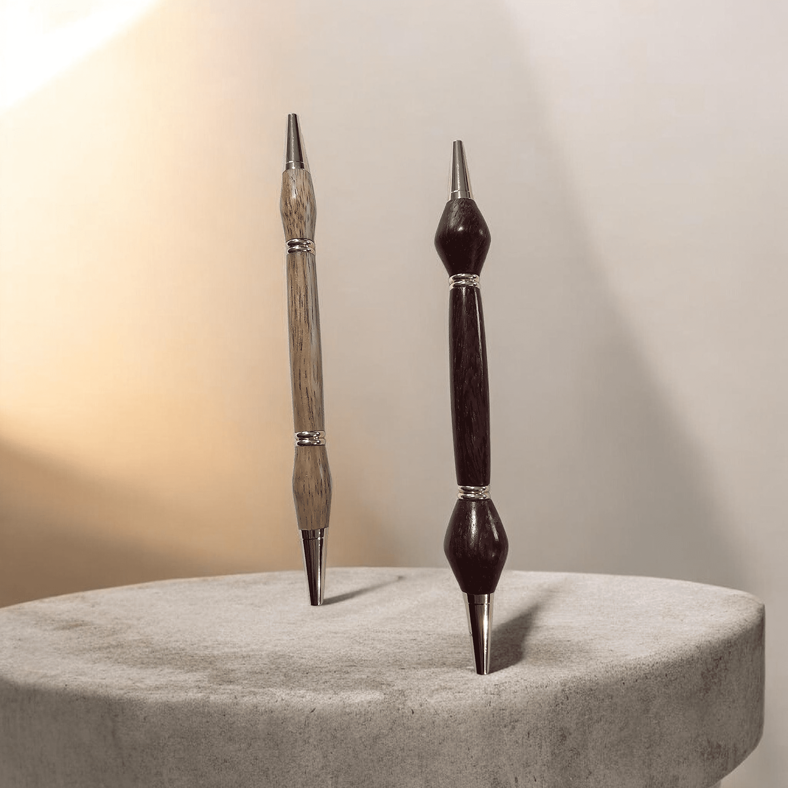 Efficiency meets elegance in these hand-turned Editor’s Pens, designed for those who value both form and function. Each pen is masterfully lathed with a distinctive dual-tapered silhouette, providing a comfortable grip no matter which end you are using.